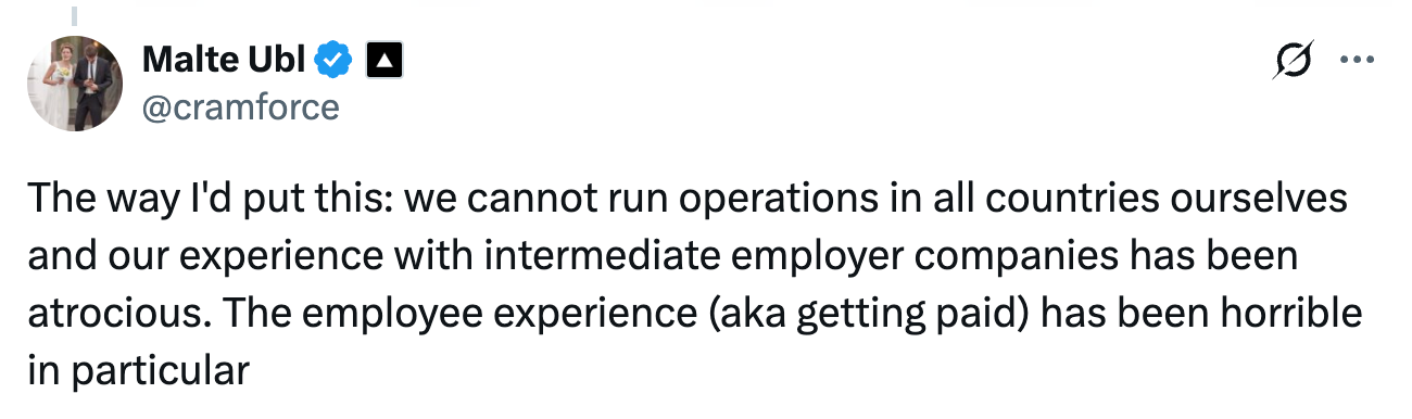 Last week, a tweet from Vercel CEO Guillermo Rauch about hiring plans in Spain sparked a long debate on Twitter about the convenience -or not- of having employees in Spain as an international company. (Click on each tweet to expand)
